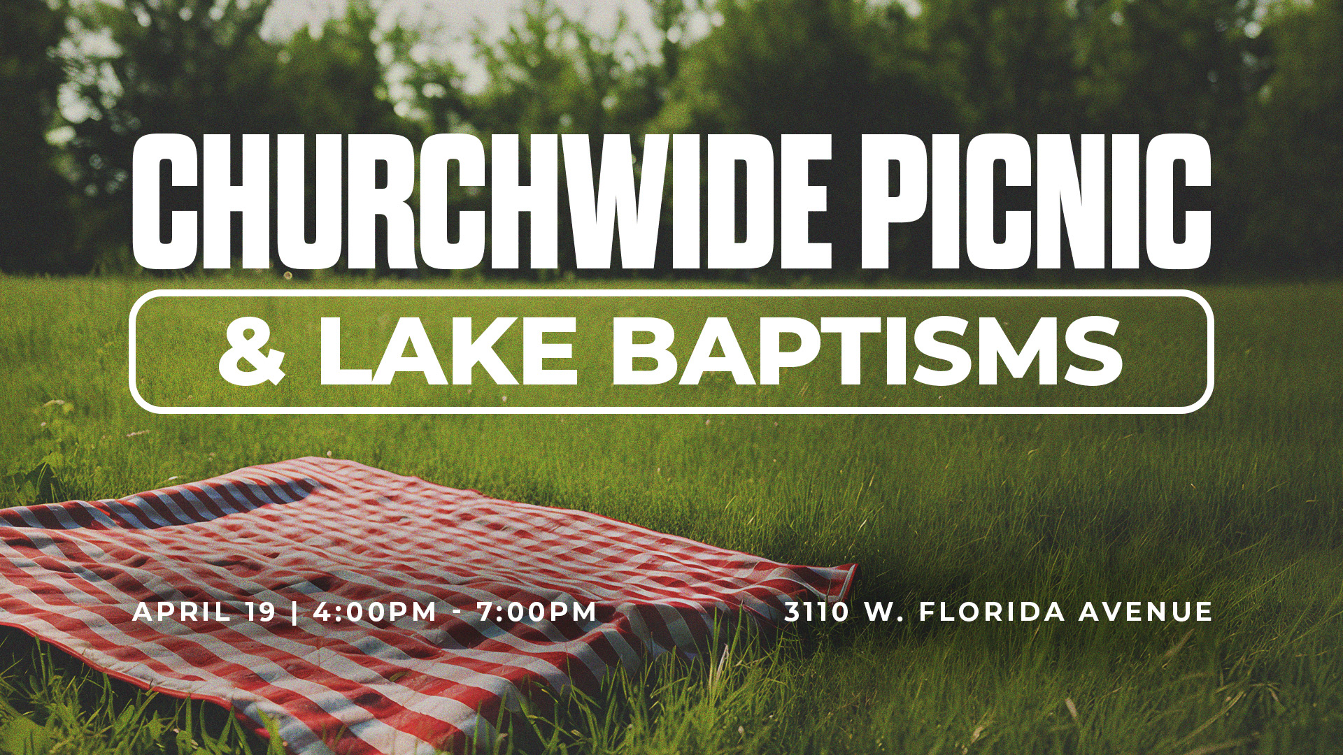 Join us for a Lake Baptism & Picnic on April 19 from 4–7 PM! This will be a special afternoon of celebrating baptisms and enjoying time together as a church family.